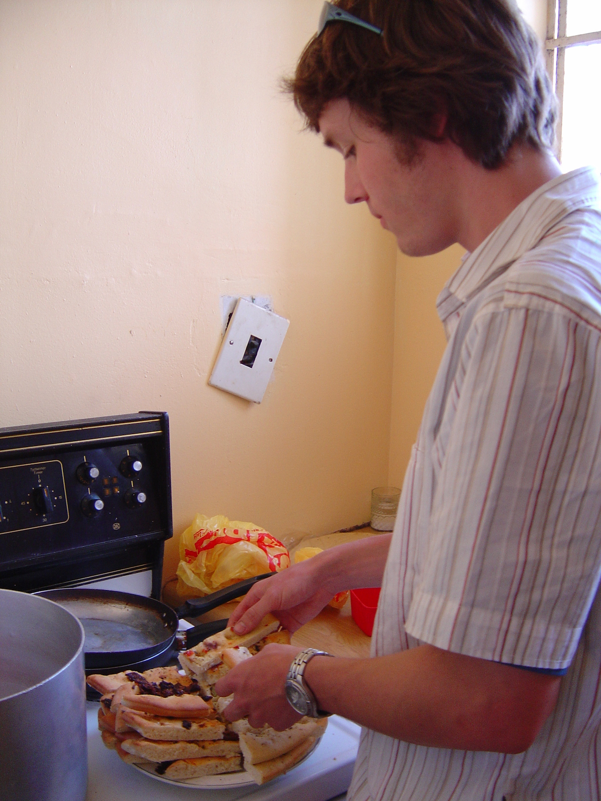 We headed home, and Kaelyn finally felt safe enough to eat her orange with the baboons left behind. Our hungry stomachs eagerly anticipated the Braai that awaited us back at Cornerstone. A Braai is a South African Barbecue, and it was put on for us by some members of the Cornerstone Community. We enjoyed fellowship over boerwurst [sausage] cooked over the fire, a fired vegetable stew, pap, a cornmeal-ish hash, and salad. Our conversations were temporarily interrupted by runaway plates picked up by gusts of wind. To escape the wind, we headed to the game room where games of pool and ping pong were enjoyed. We brought out ice cream floats, to add an American flavor to the evening.