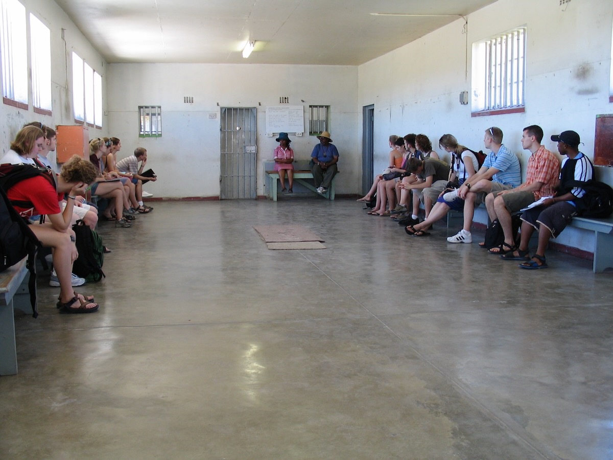 We piled out of the vans across from the city hall, guarded by tall palm trees, and walked a couple blocks to the South African Parliament. Because it is summer here most people are on “holiday,” including the MPs (members of parliament), so unfortunately we couldn’t meet face to face with any, but the tour was intersting nonetheless. The tour guide walked us through the wondefully archeticted building and explained the history of South Africa’s parliament and its modern form. Originally, South Africa had a tricameral parliament divided by race: one for the whites, one for the coloureds, and one for the Indians. The Bantu, or black Africans, could not participate in government. As a result the building has three major chambers. Under the current system there are two houses: a national house and a municipal (provincial) house. I’m sorry if I go into too much detail but I think its worth sharing some of the background as well as some of the events our trip.