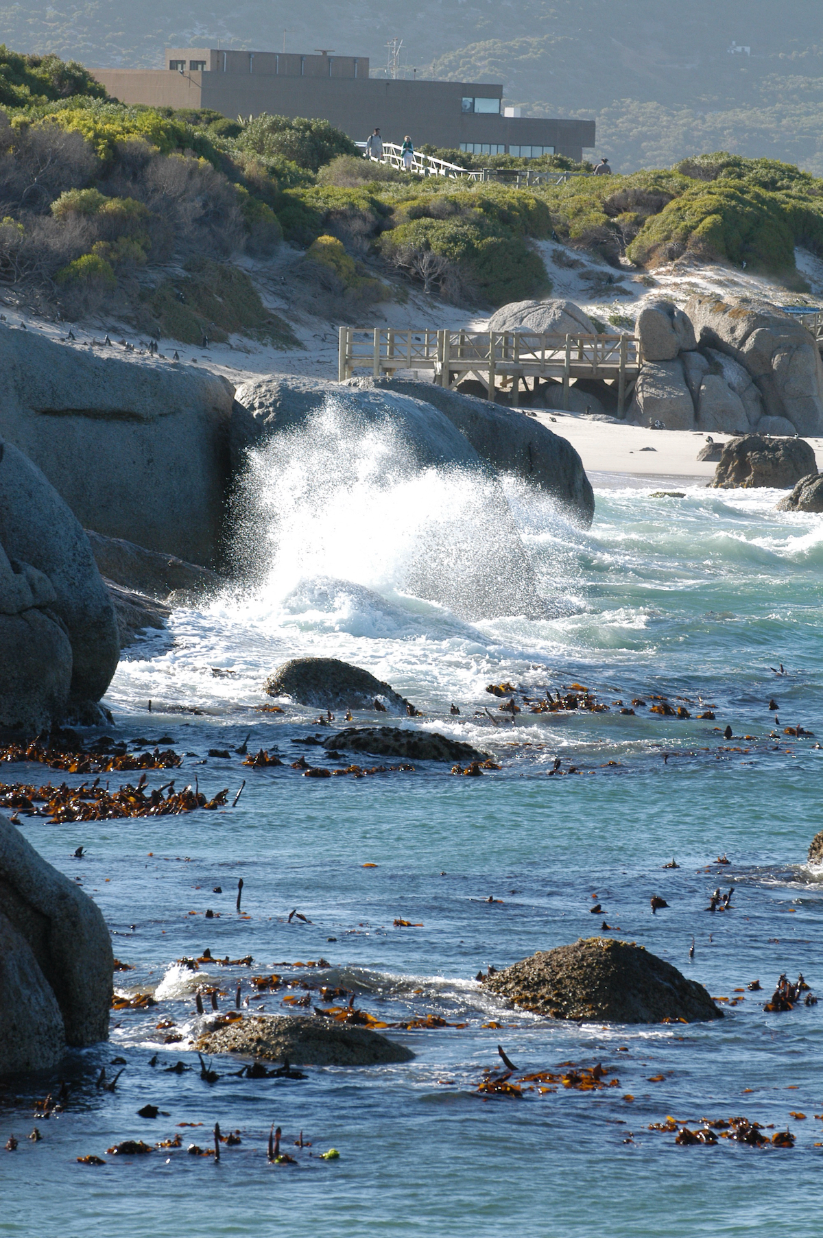 As we approached the beach, we were all surprised to see 5-7 foot waves pounding the beach. The wind was hurling sand all over the road. We were all thinking about how sandy our things were going to get at the beach but we continued on. We finally arrived at the beach after 30 minutes of beautiful coastline and seeing the whole South African Navy (which was not very big), to see penguins everywhere.