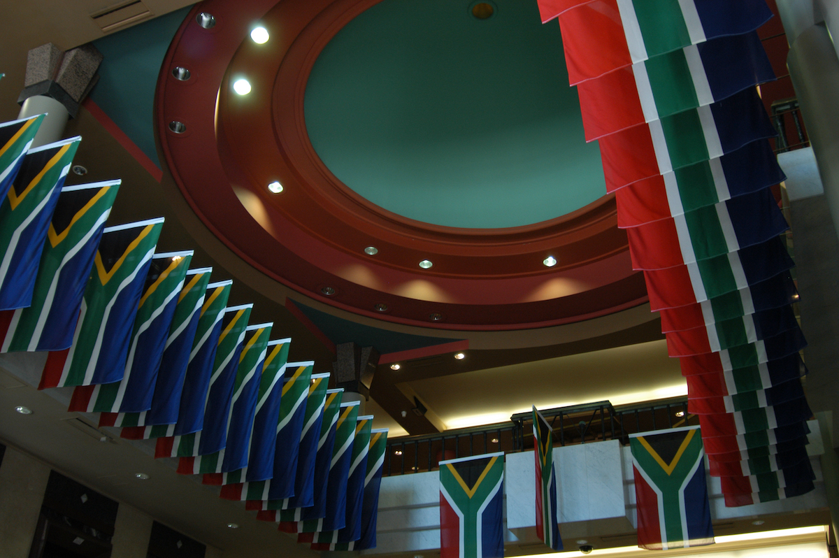 The first chamber we saw was the oldest - dating back to the early 1900s if I recall correctly - and is currently only used for caucus meetings. From their we proceeded to the NCOP or provincial congress chamber. The final destination was the chambers of national congress. A large marble entry stairway surronded by South African flags led to the doors of the chamber. The interior was under renovation so it was filled with carpet rolls and torn out seats but we could all appreciate the location. (FYI, no photos were allowed in chambers so none are posted here).