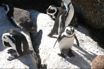 These were fearless African penguins. Being a photographer, I took about 130 pictures of them. Everyone else had gone swimming while I was taking pictures, so I did not get to swim, but that's ok. Then we all sat around the beach and talked for awhile. We talked about how we were getting sunburn down here and how there had been 8 inches of snow in Grand Rapids 2 days ago, not to rub it in too much. We also talked to a man from Johannesburg for about an hour, and that was very interesting. The beach was very aptly named because there were huge boulders all over the place to sit on and climb.