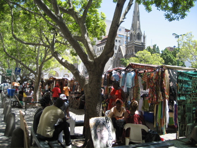We drove back into Cape Town for a stop by Green Market Square. This is a very popular tourist spot where hand crafted goods are sold right in the center of the city. After we parked the vans downtown (always fun) we walked a few blocks to the square. We enjoyed the shopping and atmosphere for a while and then headed back to the flats for dinner.