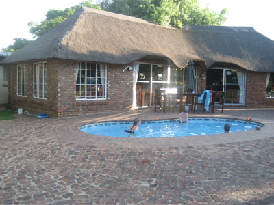 This morning after a good night's sleep in this new place we wiped the sleepers from our eyes, ate a delicious breakfast, and piled into the van to go to a Dutch Reformed Church. The service was great: a warm welcome from the pulpit, friendly people, and Dutchy pastries afterwards. The only snag was that we couldn?t understand a word. Everything was in Afrikaans. But, Afrikaans is very similar to the Dutch language, and I could even belt out my English versions of the hymns they were singing. We sang "How Goote is U" which is "How Great Thou Art" in English.