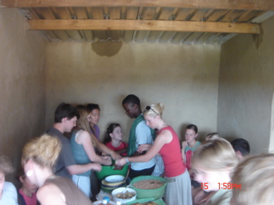 Our next visit was the highlight of the day. We drove to a house in the Tornado township. It was called this because one morning a long time ago, the residents woke up to find their neighborhood destroyed by a tornado. So anyways, the highlight was eating a traditional township meal. We all sat on crates in an unfinished house. Our meal consisted of chicken, chicken feet, a bean and maize paste, beef stew, a salad called chakalaka (just sound the word out, I'mm sure it's spelled differently), and kale. It was quite the experience, and a wonderful way to learn about the culture.