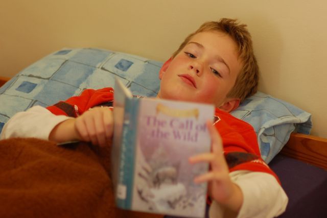 Mark laid in bed and read The Call of the Wild this afternoon. He's three-quarters of the way through it.
