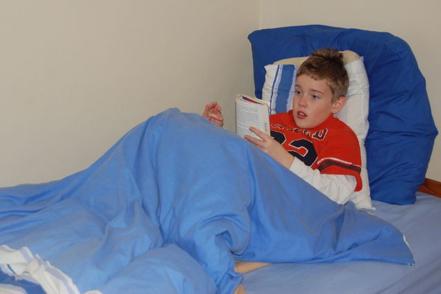 Mark is seriously into the second Harry Potter book right now. He checked it out of his school library on Friday and is nearly half way through it already.