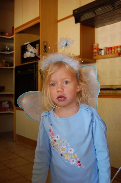 Tracy bought Catherine some fairy wings at the store this morning. She wore them with pride for quite a while this morning and evening.