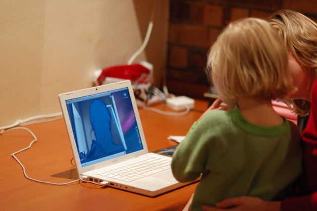 We had a videoconference with Aunt Cindy just before bedtime.