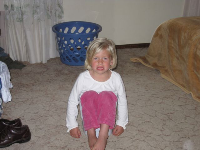 Catherine got stuck in the rubbish bin when she was playing basketball with Mark.