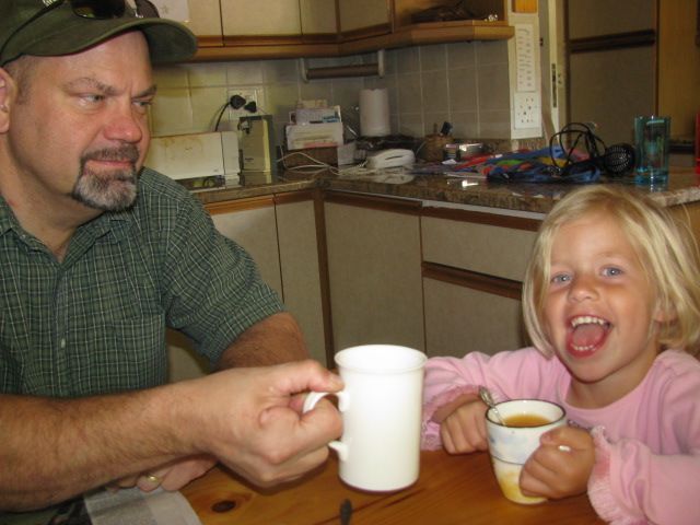 Uncle Jim and Catherine enjoyed their coffee and juice.