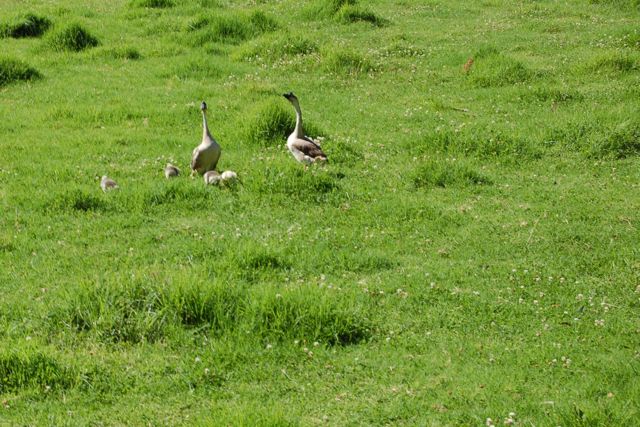 Mark and Catherine were very interested in these two geese with four goslings.