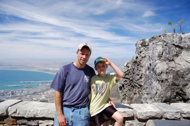 Ed took this photo of Mark and me overlooking Table Bay and the train yards in central Cape Town.