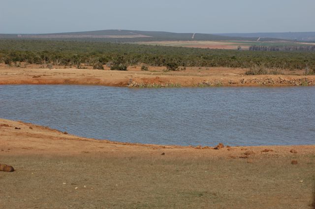 In South Africa, the word "dam" means the water, not the wall holding the water back. Addo has several dams which, at this time, are very full. There is plenty of water to go around, and we saw very few animals drinking.