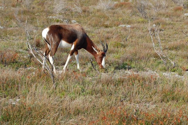 When we were driving out of the park, we saw a small herd of Bontebok. Earlier, we saw four zebra drinking at a marsh and several ostriches. This is the most wildlife we've ever seen at the Cape of Good Hope.