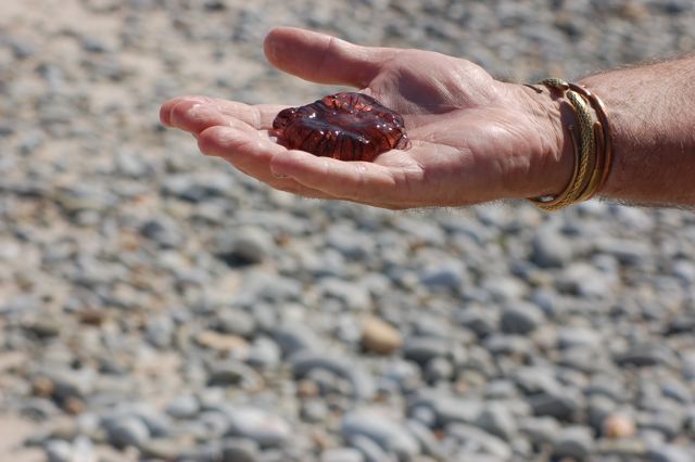 The ocean contained hundreds of jellyfish like the one which Louis is holding in this photo. There were other, larger ones as well, but this one was most common.