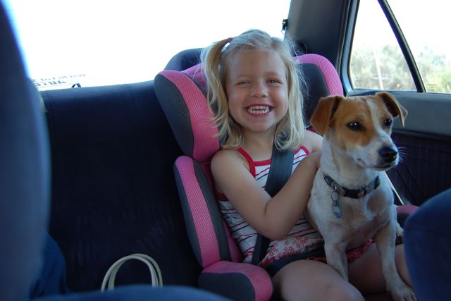 All was fine until we were ready to drive away. Chino jumped back into our car and sat on Catherine's seat before Catherine could climb in! After extracting Chino, we quickly buckled Catherine and drove away. About 20 km down the road (and traveling at 120 km/hr), Catherine blurted from the back seat "I think the dogs are following us now!"