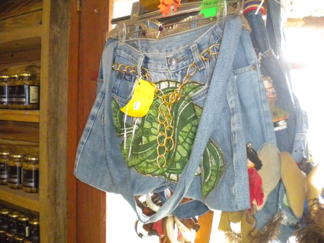Mom used to cut off old jeans, sew the bottoms together and they would be transformed into bags like these! Recycle, Reuse!! (Mom didn't put the applique on our bags, however).