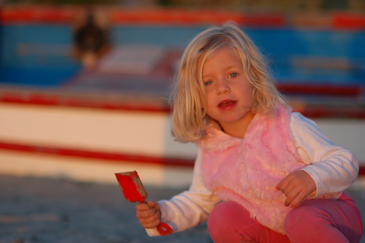 * Color: The complimentary colors red and blue work nicely here. We brought a bucket and shovel for Catherine to play with, and she happened to stop in front of this blue and red boat.