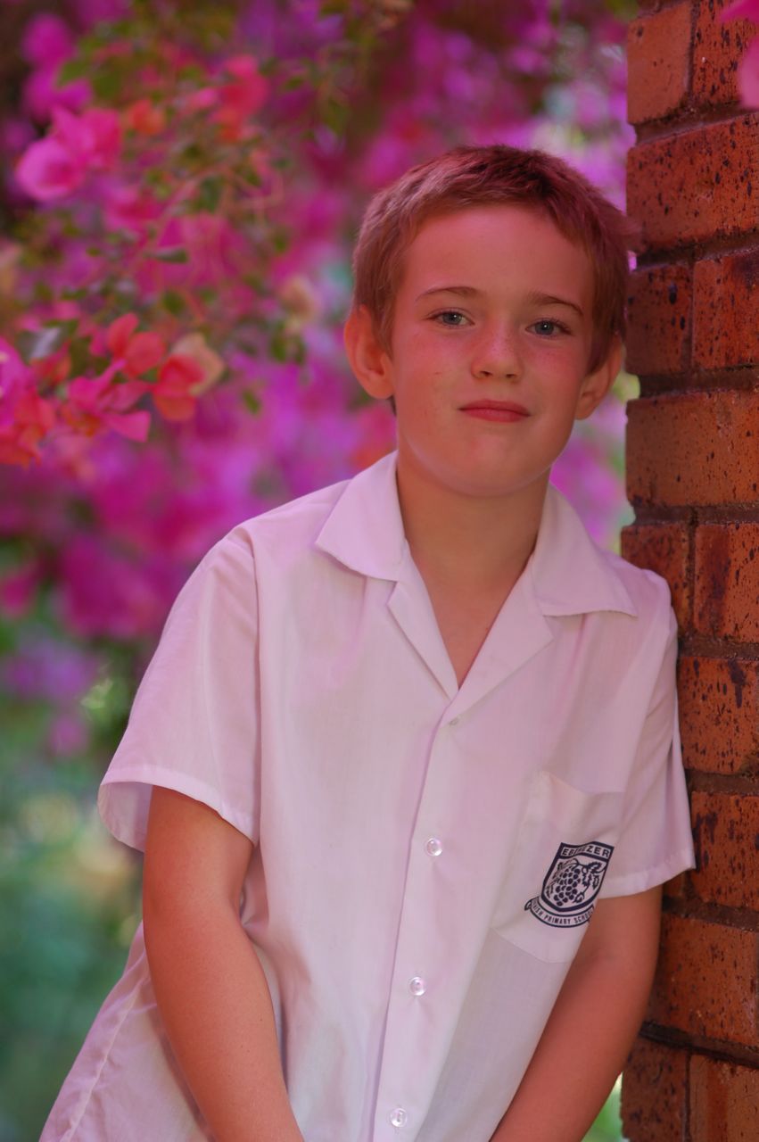 * Bokeh: The out of focus background draws the attention to Mark's face and white school shirt. My incredible 85 mm f/1.8 lens makes that possible. It is so fast that I was able to capture this image with an aperture of f/2.2 and shutter speed of 1/125 s in the low evening light.