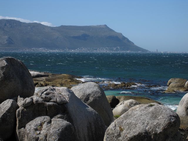 This is the view from Boulders Beach across False Bay toward Muizenberg.