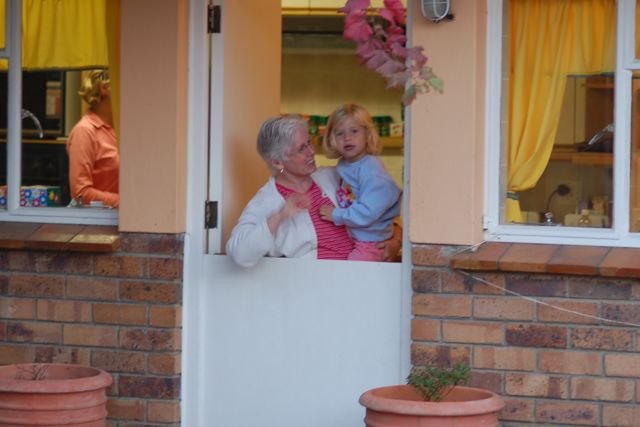 Grandma and Catherine were trying the Dutch door between the kitchen and the patio at our house. This was just before dinner as the burgers were braaing.