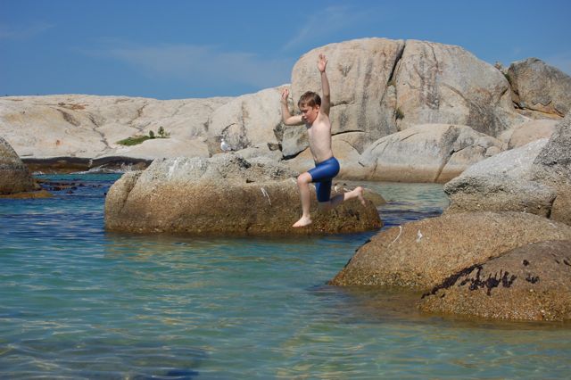 Mark enjoyed jumping off the rocks.