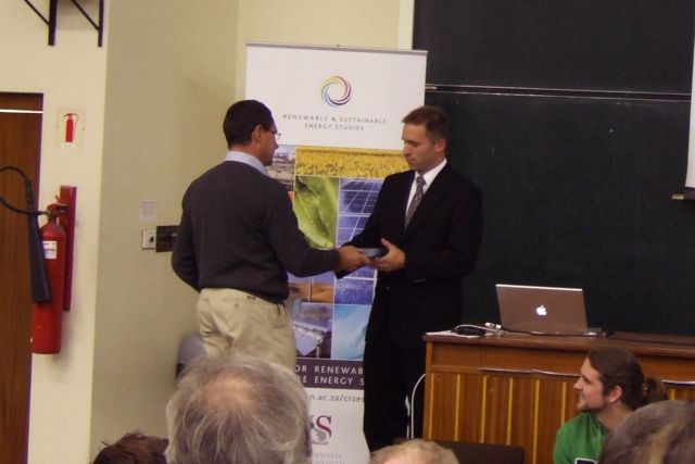 Matt gave a seminar on Green Campuses in the afternoon in Stellenbosch. Wikus is offering a small gift after the presentation.