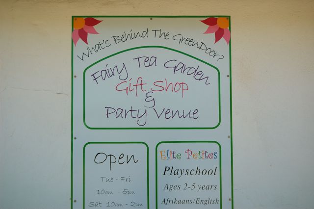 The Green Door Fairy Garden is a party venue that has been around for three years only. In 2010, they'll be starting the playschool advertised on their sign.