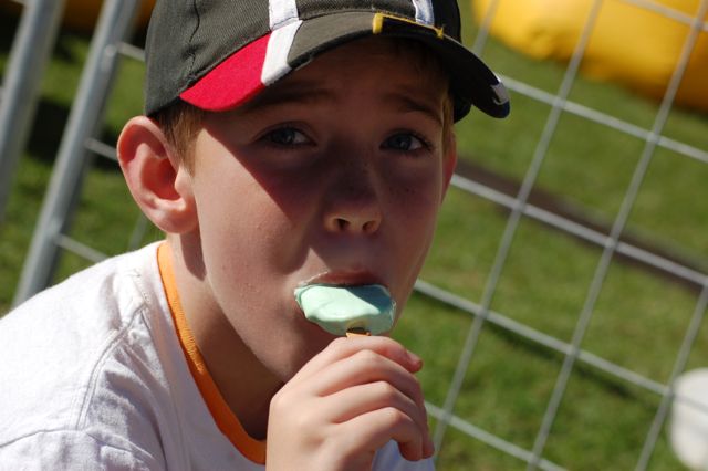 Mark is enjoying a mint ice cream bar.