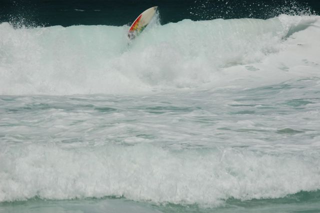 The "pumping" waves led to many wipeouts. James is somewhere in there.