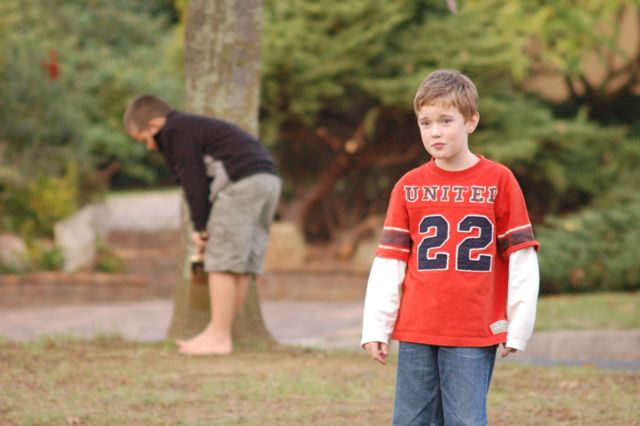 Mark is waiting for Catherine to give him the cricket ball while Willem waits to hit in the background.
