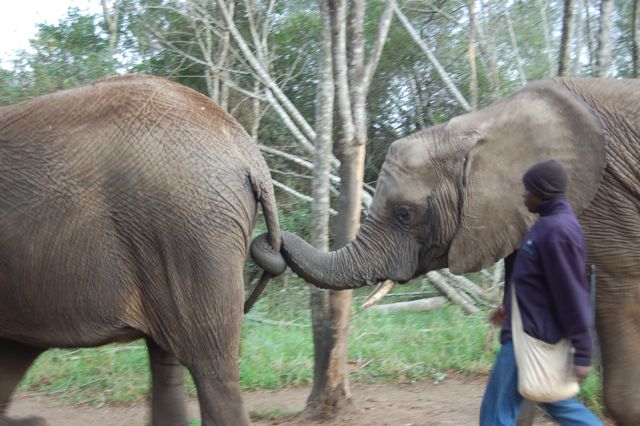On our way out of the forest, the elephants walked trunk-to-tail.