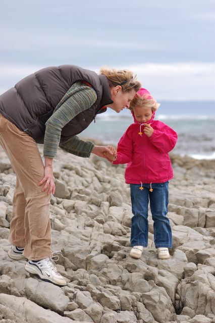 Tracy gave Catherine a helping hand at the shore.
