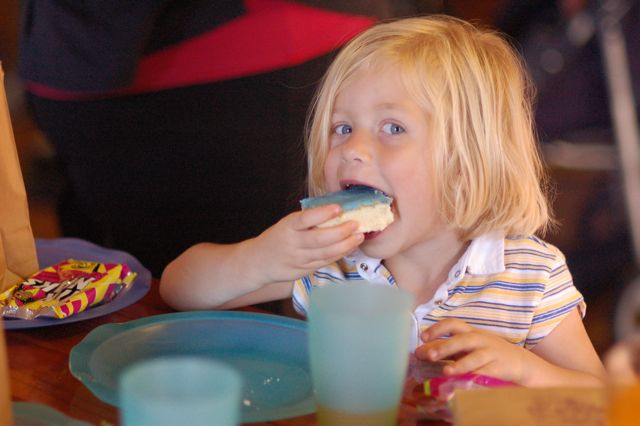 I caught Catherine taking her first bite of the Spiderman birthday cake.