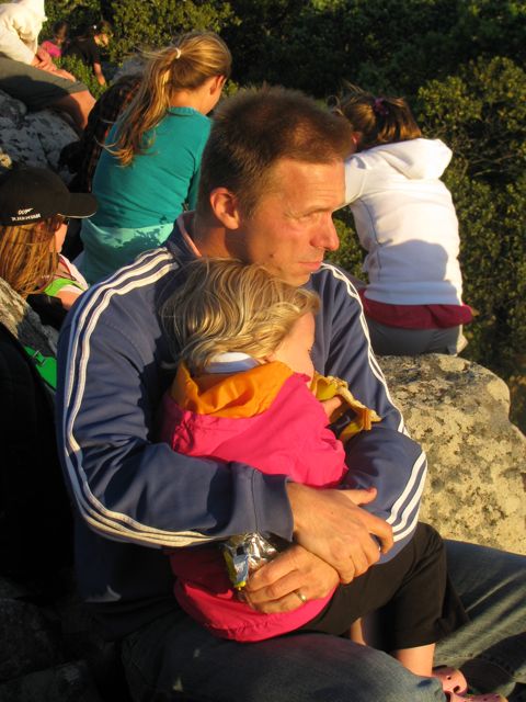 The wind was really howling at the top. Catherine snuggled with me for the entire time we were at the summit.