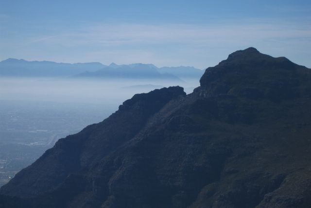 From the front face, we could see all the way to Stellenbosch across the Cape Flats. Devil's Peak is in the foreground.