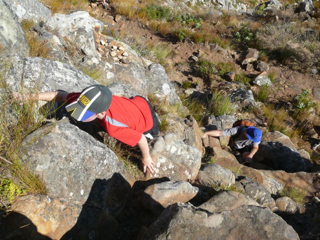 Mark is navigating one of the tricky climbs of the hike.
