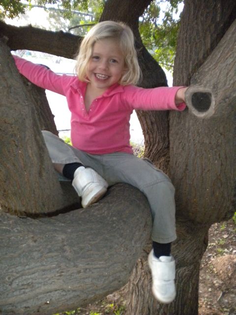 Catherine, after a boost from me, found delight in "climbing" this tree, and sitting in it for this picture.