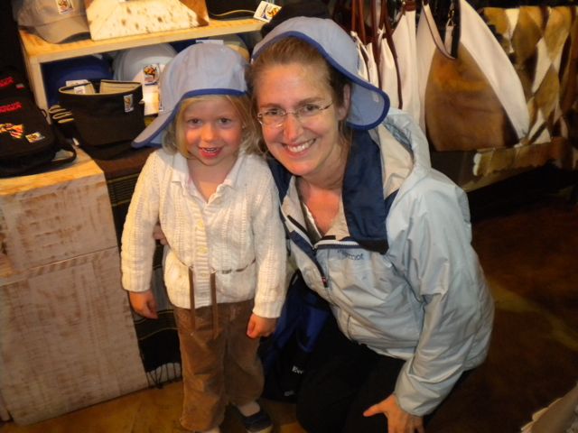 We both put on matching hats, and some American students who were in the shop took our picture.