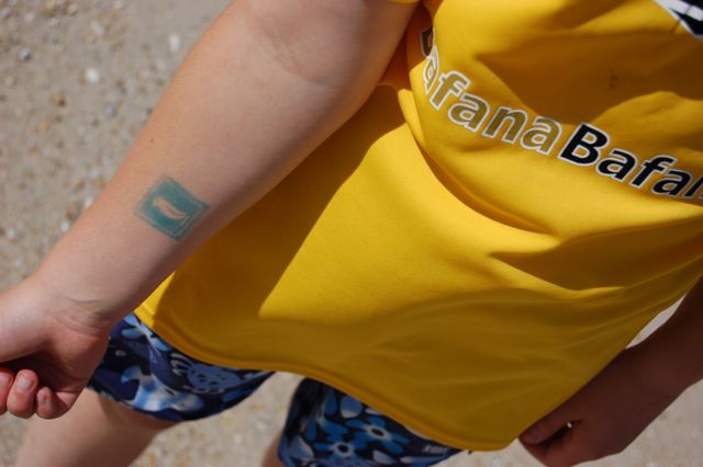 Each person who enters the beach area gets a penguin stamp.