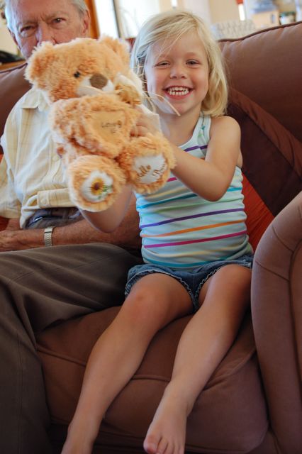 Catherine's present was a teddy bear. She loved it! On the way home, she hugged it and talked to it.