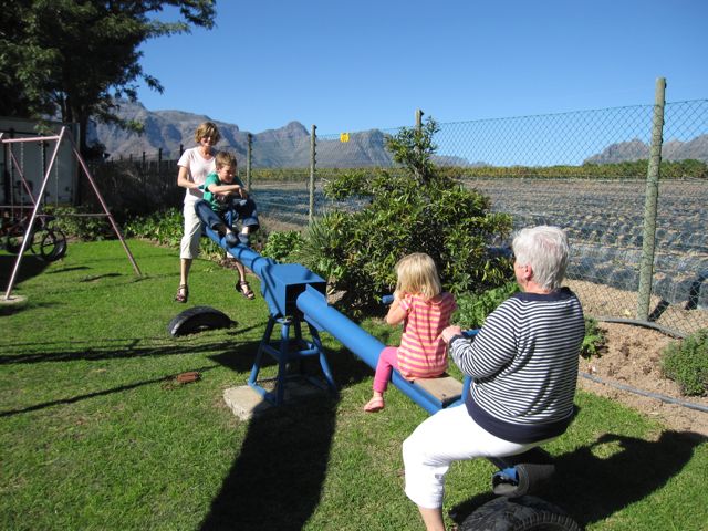 Behind Breeze-In, there was a small playground. Tracy, Mark, Catherine, and Grandma had a great time going up and down.