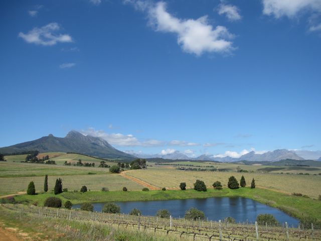 The trial wound uphill for several km before going down again. This view of Simonsberg was afforded early in the ascent.