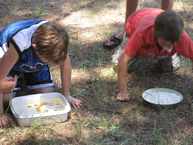 Mark's friend Nic is dunking for coins in the flour bowl.
