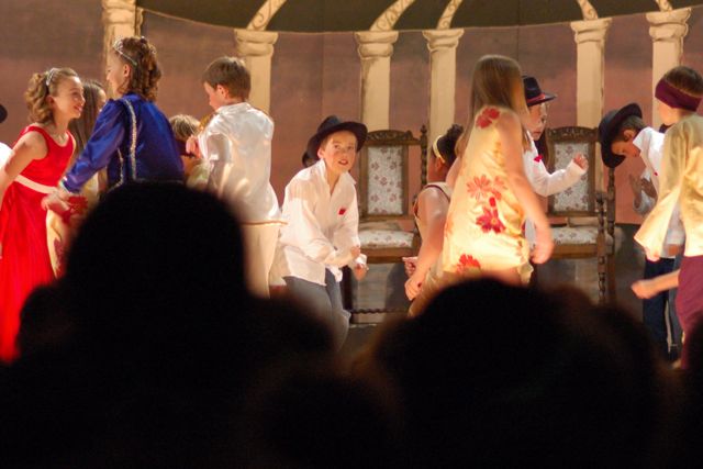 After a while, the entire onstage cast danced the twist at the ball.