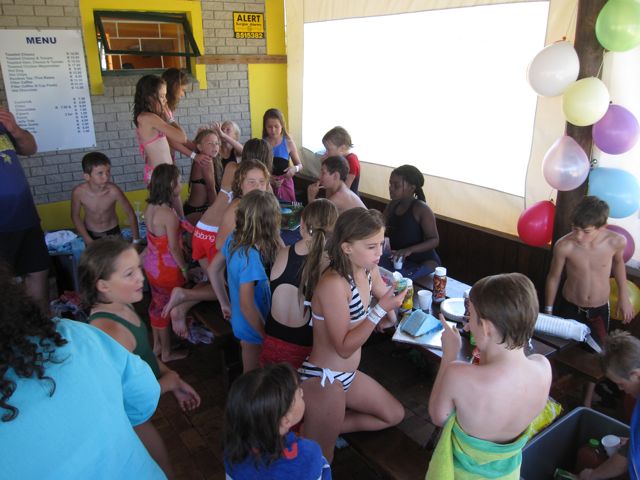 When I picked up Mark, I snapped this photo of Mark (lower right) and his friends at the waterpark party area.
