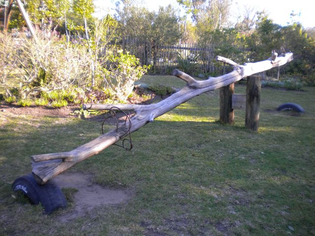 Albert is ingenious. Here is an example of that ingenuity. He used a tree trunk and the wiring for the handles.