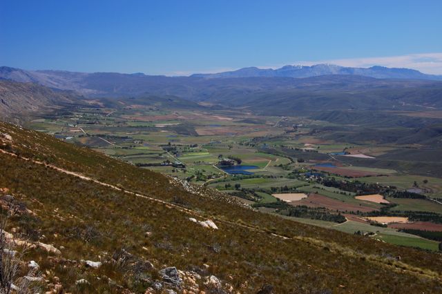 The Koo Valley is known for its fruit production. Lots of apples and tomatoes are grown (with irrigation) here. If you look carefully, you can see that the distant mountain peaks are still covered with a little snow.