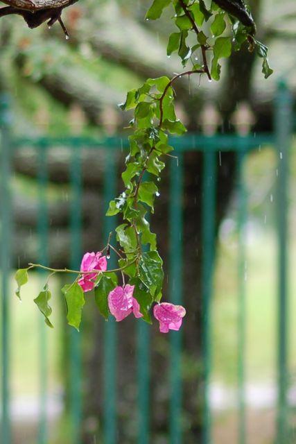 The rain has knocked most of the colorful leaves on the bougainvilleas in the front yard.