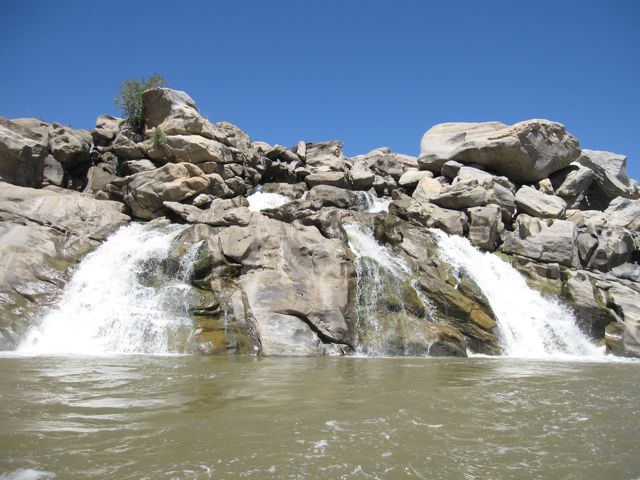 We paddled slightly upstream from the abseil point to check the falls.